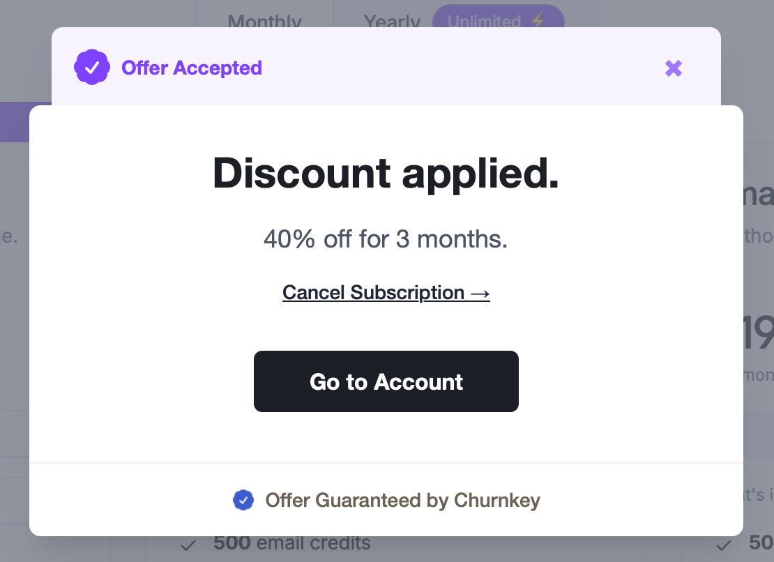 I tested this with a second company. Same pattern. Same retention tool (Churnkey). Same 40% discount.
